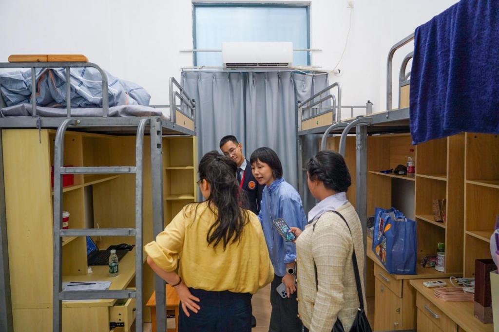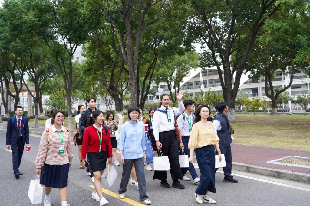 仪式后,在中方教师的带领下,泰国留学生参观了风景如画的科院校园。从波光粼粼的吟波湖到设施先进的教学楼,从菜色丰富的学生食堂到功能齐全的体育馆,留学生们对未来的学习与生活环境充满了期待。