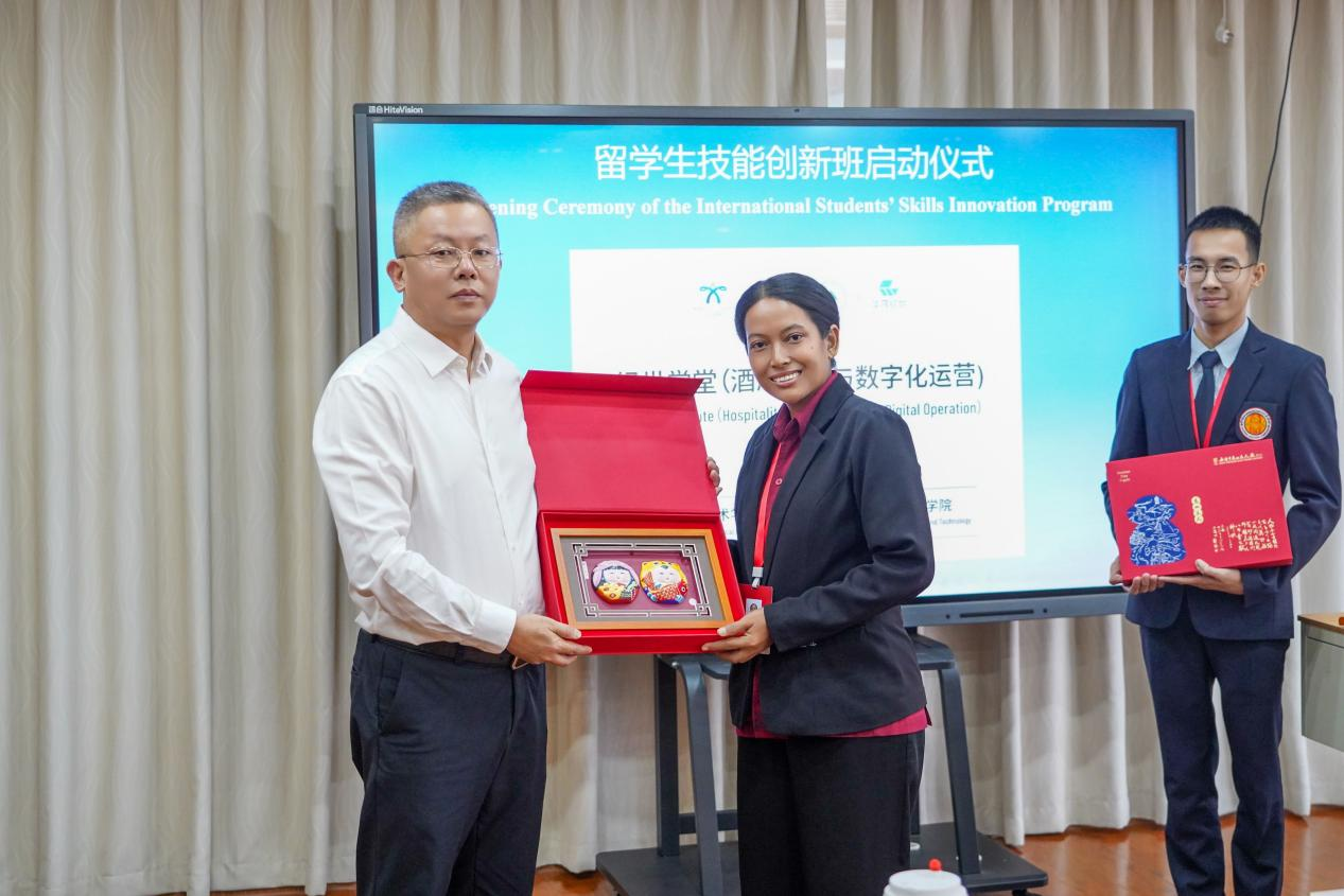 秋阳和煦,桂子飘香。10月14日下午,我校与泰国南奔技术学院联合举办的“经世学堂”项目泰国留学生技能创新班开班仪式在我校举行。校长华裕良、泰国南奔技术学院教师代表塔塔索博尔、尼塔亚,以及我校相关职能部门负责人、文化旅游学院负责人、酒管专业教师与15名泰国学生共同出席了仪式。