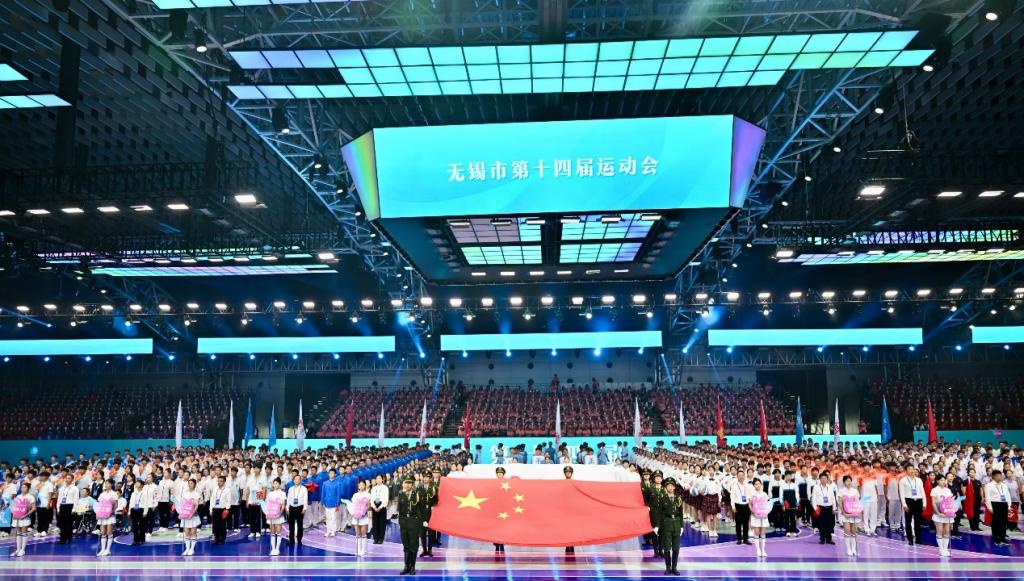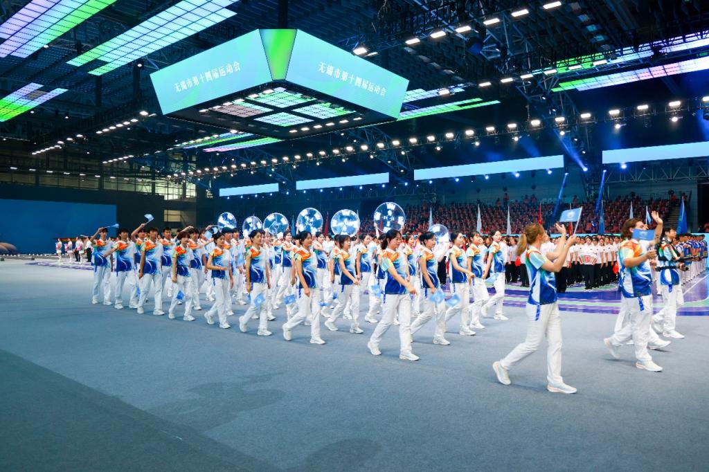 金秋送爽,运动逐光。10月15日,第十四届无锡市运动会开幕式在无锡市太湖博览中心隆重开幕,来自全市各区县的运动队伍、表演方阵齐聚一堂,共赴这场活力满满的体育盛会。我校40名优秀学子与区内国际友人代表、穿戴式机器人和7个3D全息风扇组成的无锡高新区(新吴区)代表方队精彩亮相。大学生们以整齐划一的步伐、昂扬向上的风貌和富有感染力的表现,圆满完成了开幕式方队展演任务,赢得了现场领导与观众的高度赞誉,充分展现了青年学子的卓越风采和学校的育人成果。