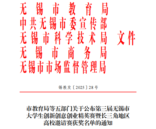 本次大赛由无锡市教育局、市委宣传部、市科技局等五部门联合主办,以“锡引力 创未来”为主题,设置创新、创意、创业三大主赛道及老字号创新设计专项赛道,采用校级初赛、市级复赛、市级决赛三级赛制。自6月启动以来,大赛吸引了长三角地区多所高校的优质项目,经过层层筛选,我校取得6金5银7铜的优异成绩,尽显我校学子的创新创业风采。
