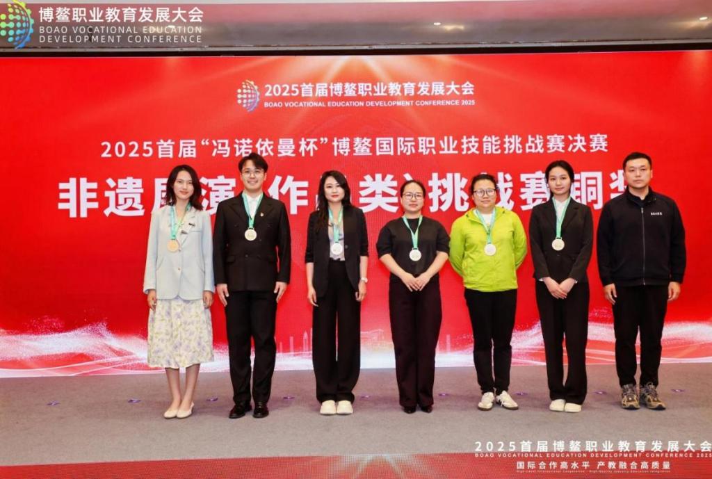 大会同期开展“冯诺依曼”杯博鳌国际职业技能挑战赛,以“技融全球,遗韵共赏”为主题,吸引全球20多个国家及地区近100所学校的200余支中外队伍同场竞技。我校斩获了三金、五铜的优异成绩,充分展现了学校在融合非遗传承与创新设计方面的综合实力与影响力。