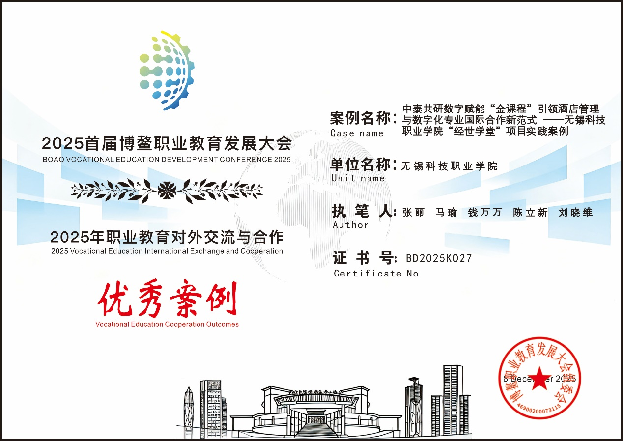 经组委会评选,我校获得2025首届博鳌职业教育对外交流与合作“典型院校”、2025亚太职业院校影响力指数“二星院校”,中泰合作项目实践案例获评2025年职业教育国际合作与传播“优秀案例”。这些荣誉的取得是对我校在国际合作路径探索、资源建设与标准输出等方面取得扎实成效的充分肯定。