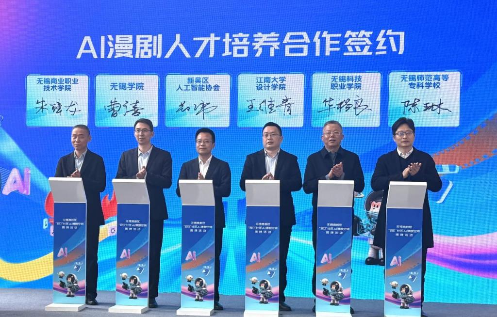 春风拂新吴,AI启新篇。为携手抢占“AI+内容”赛道,加速集聚数字文创与AI领域创新项目,赋能区域人工智能与数字创意产业高质量发展,3月31日上午,无锡高新区“双O”社区(OPC、Open Claw)AI漫剧空间揭牌活动在无锡人工智能产业园隆重举行。我校党委副书记、校长华裕良应邀出席,并代表学校签署AI漫剧人才培养合作协议。