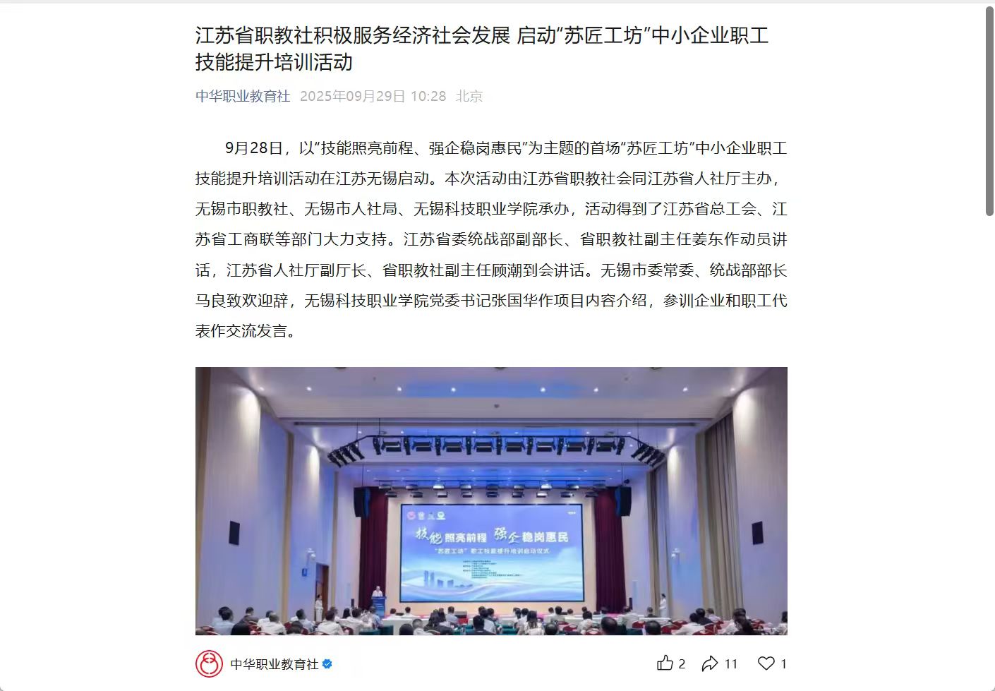 下一篇:无锡博报:“苏匠工坊”职工技能提升培训在锡启动