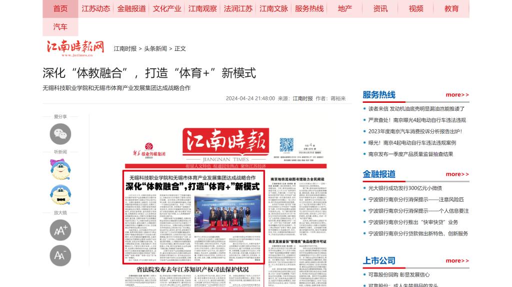 上一篇:人民日报:体教融合 聚势谋远——无锡科技职业学院和无锡体育产业发展集团达成战略合作