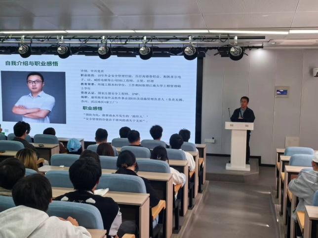 在无锡威孚集团有限公司总经理吴楚教授的专题讲座中,数控技术的进化之路以生动形象的方式展现在学生面前。他从传统手工编程讲到智能生产系统,用威孚集团的最新案例,让学子们感受到“技术革新不再是遥远的概念,而是触手可及的现实力量”。康明斯HSE总监许刚的“百家话安全”讲座同样精彩纷呈。他通过18年跨国企业经验的沉淀,将安全管理专业的发展路径清晰地展现在学生面前。“把标准当习惯,让责任变能力”的谆谆教诲,深深烙印在每位学子的心中。一名学生在听完讲座后感慨道:“原来安全不仅是戴好安全帽,更是企业运行的‘隐形生产线’!”。
