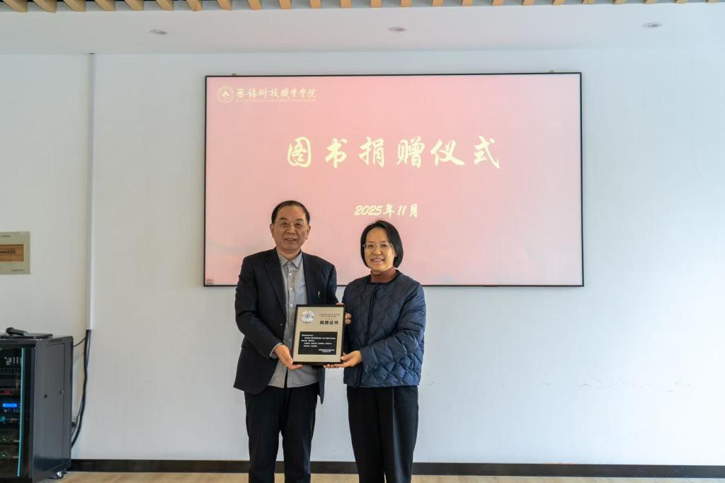 此次活动不仅是一场知识的薪火传递,更承载着黄胜平院长对科院发展的殷切期许,对青年学子成长的深情关爱。学校图书馆将妥善保管、合理利用这批图书,面向全校师生开放借阅。学校也将以这份珍贵捐赠为契机,持续深耕书香校园建设,推动优良学风建设。