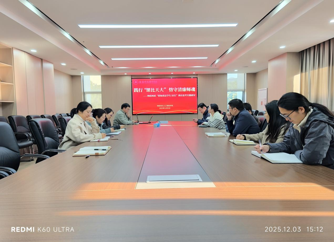 学院各系部围绕“课比天大”核心理念组织开展了专题研讨,共同通过“假如我是学生”“假如我是学生家长”的双重视角,深入探讨育人实践中的廉洁准则与责任担当。学工办辅导员队伍通过分析职场案例、讲解诚信求职、剖析行业风险。通过研讨,教师们进一步凝聚了“以生为本、以爱育人”的共识,明确了坚守廉洁底线、公平对待每一位学生、将师德师风要求内化于行的共同责任。
