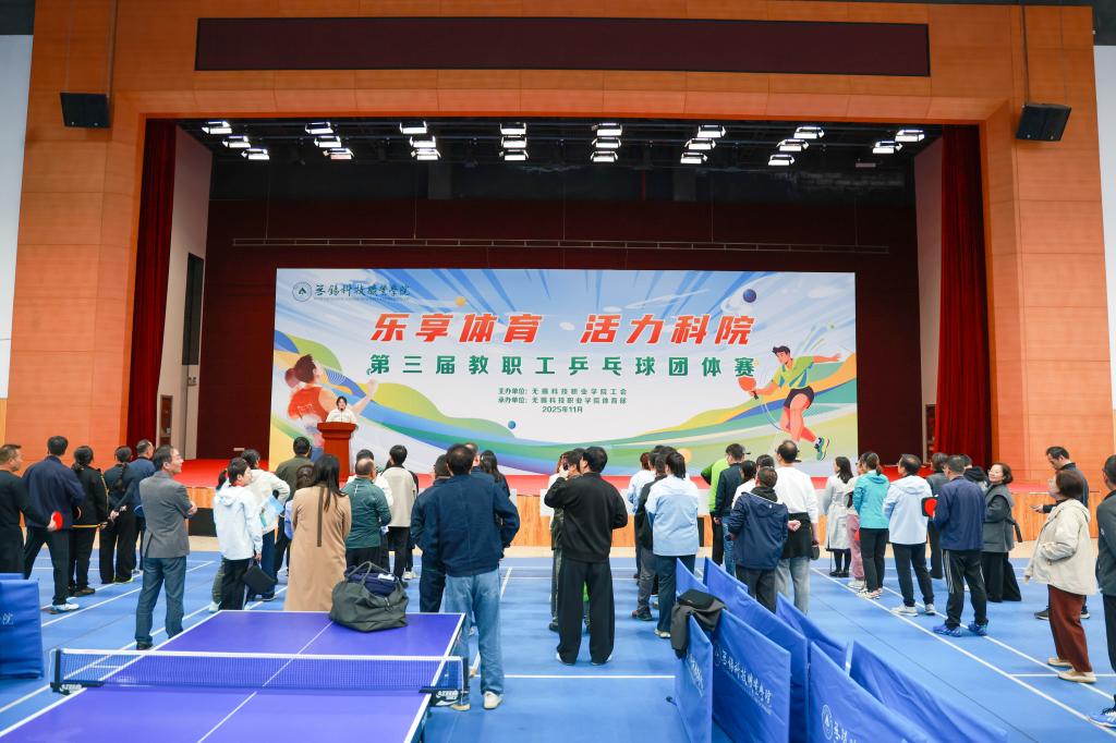 11月12日,我校在新吴体育馆举办第三届教职工乒乓球团体赛在新吴体育馆。本届赛事由校工会主办、体育部承办。比赛以“合作、团结、拼搏、自信”为主题,以“乐享体育,活力科院”为口号,旨在提升教职工的精神文明与身体素质,营造积极、健康、和谐的校园氛围。赛事吸引了机关及各二级院部教职工的广泛参与。开幕式上,副校长邹洪芬宣布比赛正式开始。裁判员代表龚波与运动员代表郁骅分别庄严宣誓,承诺将恪守体育精神,公平竞...
