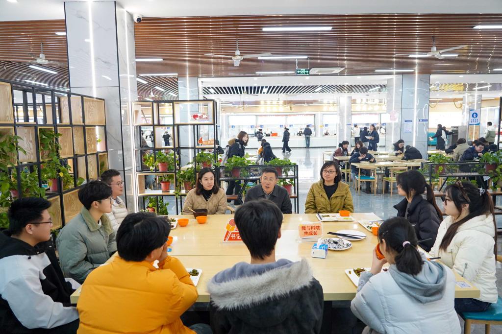 12月23日中午,冬日的阳光透过玻璃窗洒进学生一食堂,饭菜香与畅谈声交织成暖心的旋律。学校党委书记张国华与7名学生代表围坐一桌,以一顿平常而又特别的午餐,开启了一场“心贴心”的对话。党委副书记韩宁、学生工作处、后勤管理与基建处等职能部门负责人全程参与,在烟火气中倾听学子心声。没有主席台,不设发言席,张书记如邻家长辈般,从自己的大学岁月聊起。“我们那时候,没有智能手机,陪伴最多的就是书本。”他语气温和...