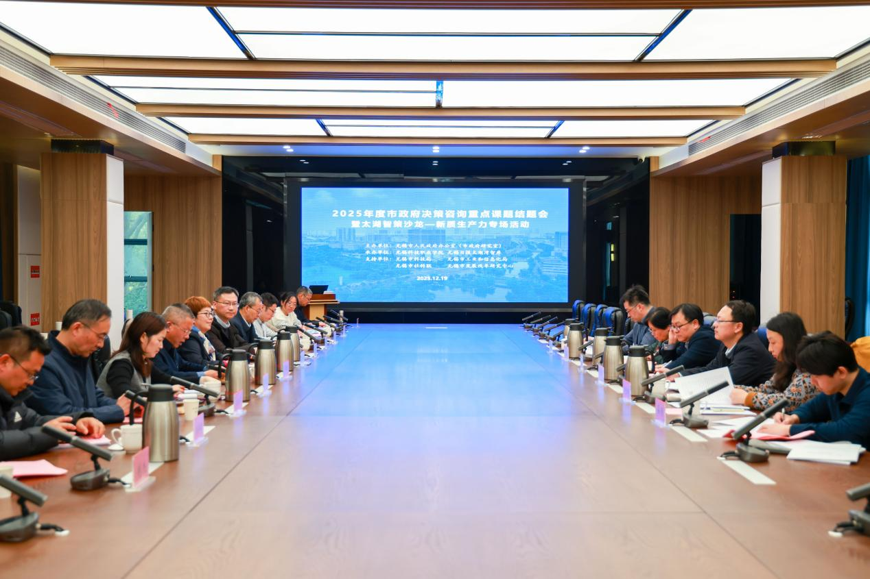 12月19日下午,2025年度市政府决策咨询重点课题结题会暨太湖智策沙龙(新质生产力专场)在无锡科技职业学院隆重举行。无锡市政府办公室沈振鸣副主任、市社科联孟菲副主席、市科技局成果转化与区域创新处赵雪倩处长、市工信局人工智能与物联网产业处张凡处长、市发展改革研究中心发展战略研究部晏清主任、无锡科技职业学院华裕良校长,以及中共无锡市委党校、无锡学院、无锡科技职业学院相关课题成员参加本次活动。活动由无锡市...